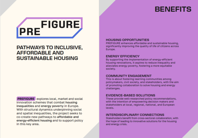 In a political and economic landscape marked by housing and climate crises, the PREFIGURE project places housing inequalities and energy poverty at the centre of its efforts to facilitate a just energy transition in European cities. Central to the project is a focus on “Prototypes of change” – existing and emerging practices of social, policy and market innovation that actively promote pathways towards socially just and sustainable transitions.
