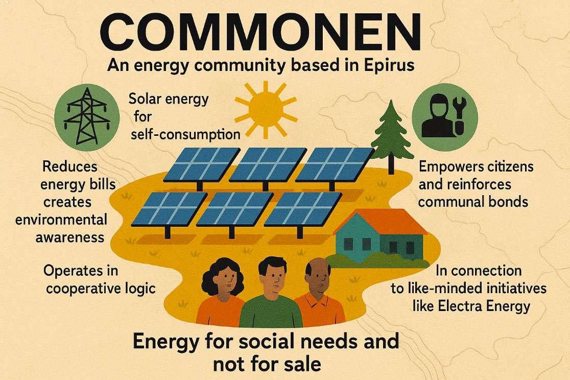 CommonEn, an energy cooperative established in Ioannina, Greece, in 2021, launched its first solar park in 2023. This initiative has the capacity to provide electricity to 35 households and local small-to-medium enterprises (SMEs). Backed by the Electra Energy, CommonEn is committed to promoting sustainable energy and tackling energy poverty. Operating in a region characterised by high unemployment and an ageing population, CommonEn is a prime example of a grassroots social innovation in the field of community-centred energy solutions.