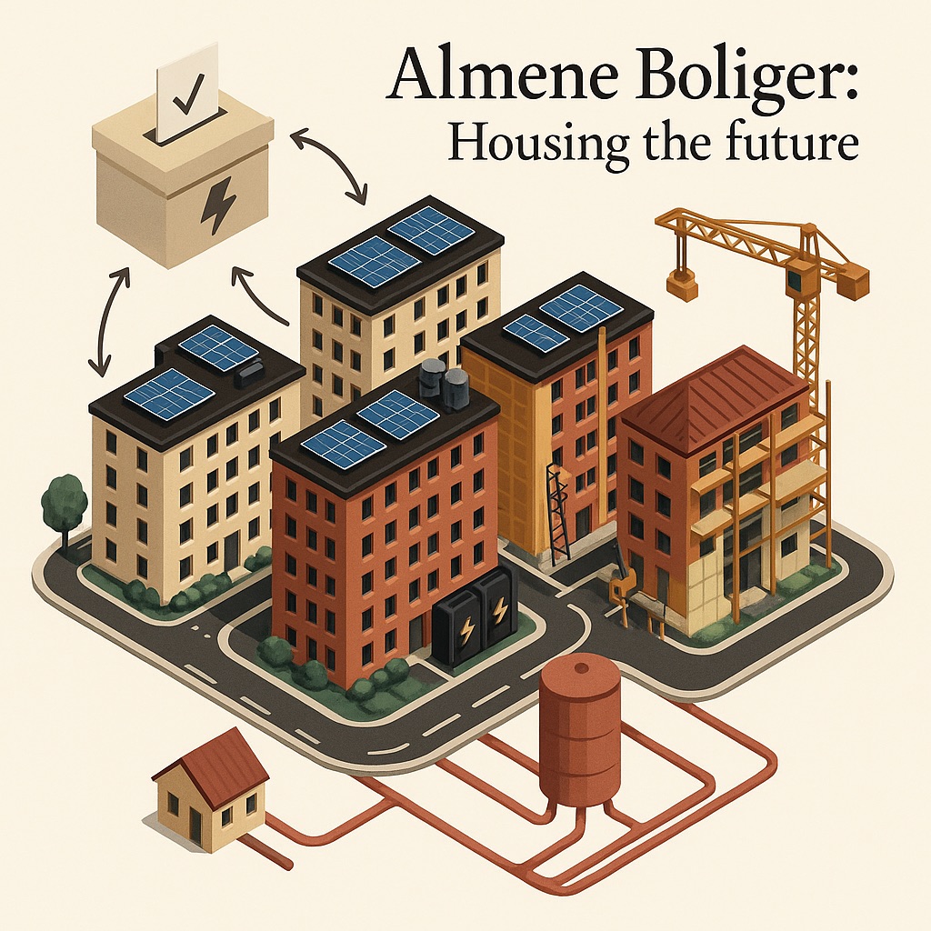 Denmark’s non-profit housing associations (NPHAs, or Almene Boliger in Danish) provide affordable, democratically managed housing for around 20% of the population, including vulnerable groups. They are supported by state subsidies and municipal oversight. The sector is governed by tenant-elected boards and coordinated by the umbrella organisation BL. It also promotes energy initiatives, as demonstrated by the Øbro95 housing association in Copenhagen, where residents use solar panels, batteries, and spot-price billing with support from the green technology firm Enyday. While this model highlights the potential for tenant-led, affordable and sustainable energy transitions, concerns have been raised about its replicability in disadvantaged areas due to persistent financial and structural barriers.